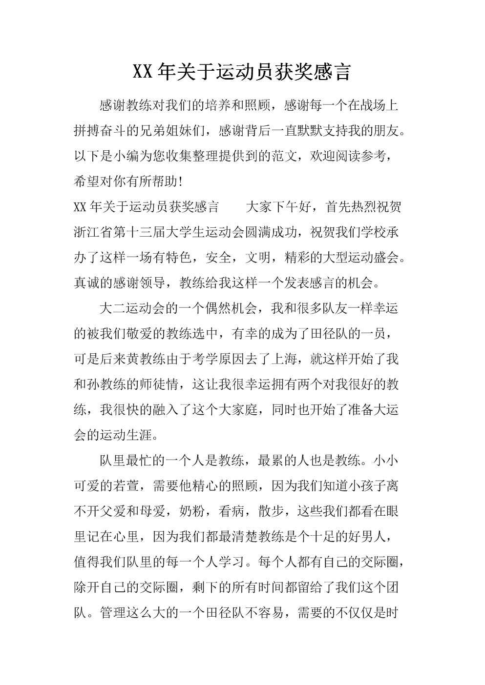 示例:“我還要感謝我的教練和隊友們,是你們的陪伴和支持,讓我更加堅定地走完這段征程?!?/p>