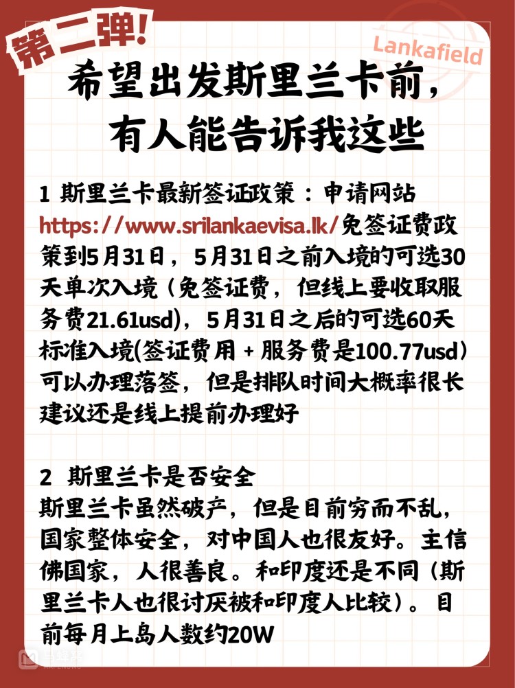 ?分享旅行經(jīng)驗:如果你有任何關(guān)于斯里蘭卡旅行的經(jīng)驗或建議,歡迎在小紅書上分享出來,讓更多的人受益,也歡迎分享你的旅行照片和心得,讓更多的人了解這個美麗的國度。 #斯里蘭卡旅行# #最新入境指南# #探索世界#