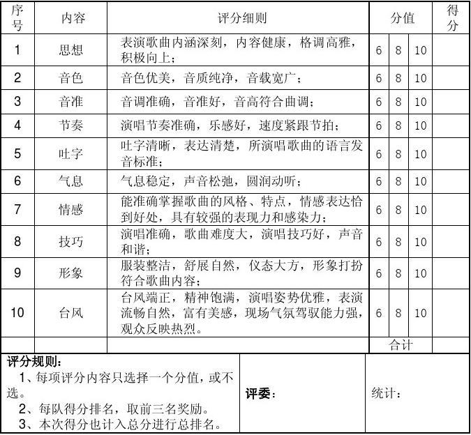 歌唱比賽的評(píng)分應(yīng)該是一個(gè)綜合考量的過(guò)程,需要結(jié)合技巧、表現(xiàn)、綜合表現(xiàn)以及個(gè)性化元素等多方面因素,評(píng)委在評(píng)分時(shí)應(yīng)該根據(jù)比賽的具體要求和目的,靈活調(diào)整評(píng)分標(biāo)準(zhǔn)的側(cè)重點(diǎn),觀眾的反饋和評(píng)價(jià)也是比賽的重要組成部分,應(yīng)該作為評(píng)分的重要參考,在未來(lái)的歌唱比賽中,我們應(yīng)該不斷完善評(píng)分標(biāo)準(zhǔn),使之更加科學(xué)、合理,以推動(dòng)歌唱比賽的健康發(fā)展。