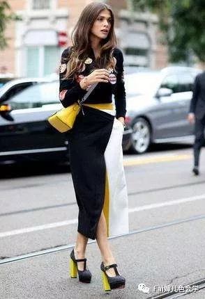 3、派對(duì)穿搭:亮色系的拼接包裙搭配流蘇腰帶和高跟鞋,吸引目光的同時(shí)展現(xiàn)個(gè)性魅力。
