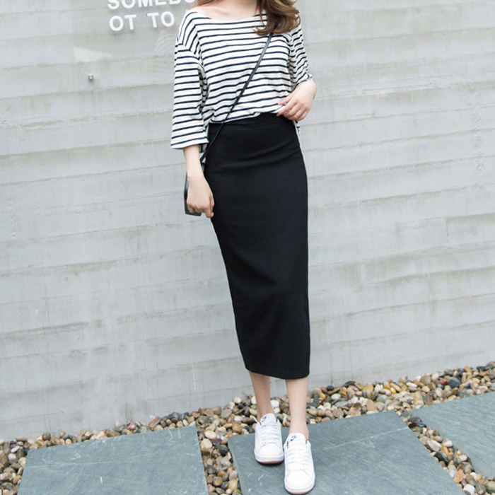 2、休閑出行:黑色棉麻包裙搭配白色T恤和運(yùn)動(dòng)鞋,再配上簡(jiǎn)約的配飾,打造休閑時(shí)尚的出行造型。